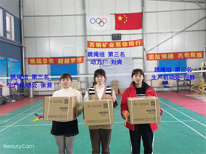 為“建和諧礦山,揚(yáng)女工風(fēng)采”,在“三八婦女節(jié)“來臨之際,為感謝長期付出辛勤汗水的全體女職工,調(diào)動女工強(qiáng)身健體的積極性,公司工會特舉辦“三八節(jié)女工跳繩、踢毽子比賽”,此次活動共有50人次參與,通過預(yù)賽、決賽的方式,分別角逐出一等獎一名 ,二等獎兩名,三等獎三名,比賽結(jié)果如下: